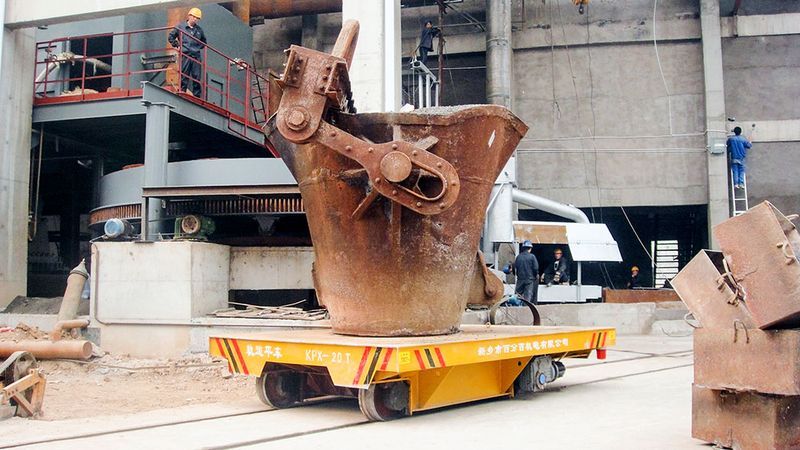 鋼包的尺寸大小不同,噸位也不一樣,對于小噸位的蓄電池軌道平板車,一般臺面設(shè)計為平的,鋼包直接放到上面就行了,對于大噸位的鋼包車,由于體積較大,為防止側(cè)翻,一般會有夾軌器輔助。采用遠程無線控制系統(tǒng),可實現(xiàn)無人操作,保障人員安全,加裝PLC系統(tǒng),可實現(xiàn)自動化智能化運行。